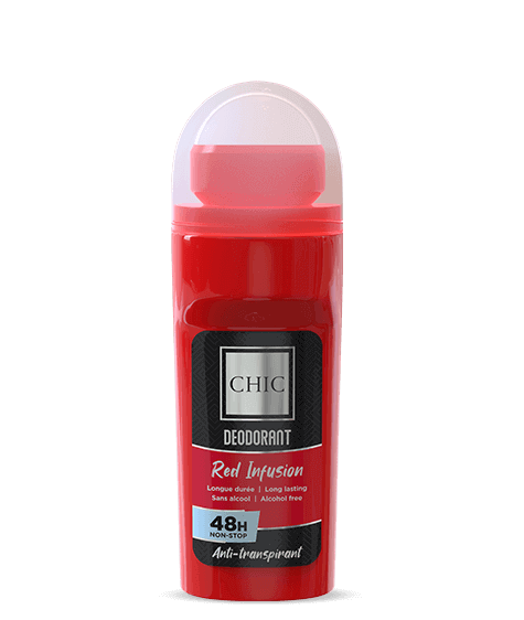CHIC Red infusion roll-on deodorant regulates perspiration for 48 hours. It absorbs humidity and fights against bad smells under the armpits.